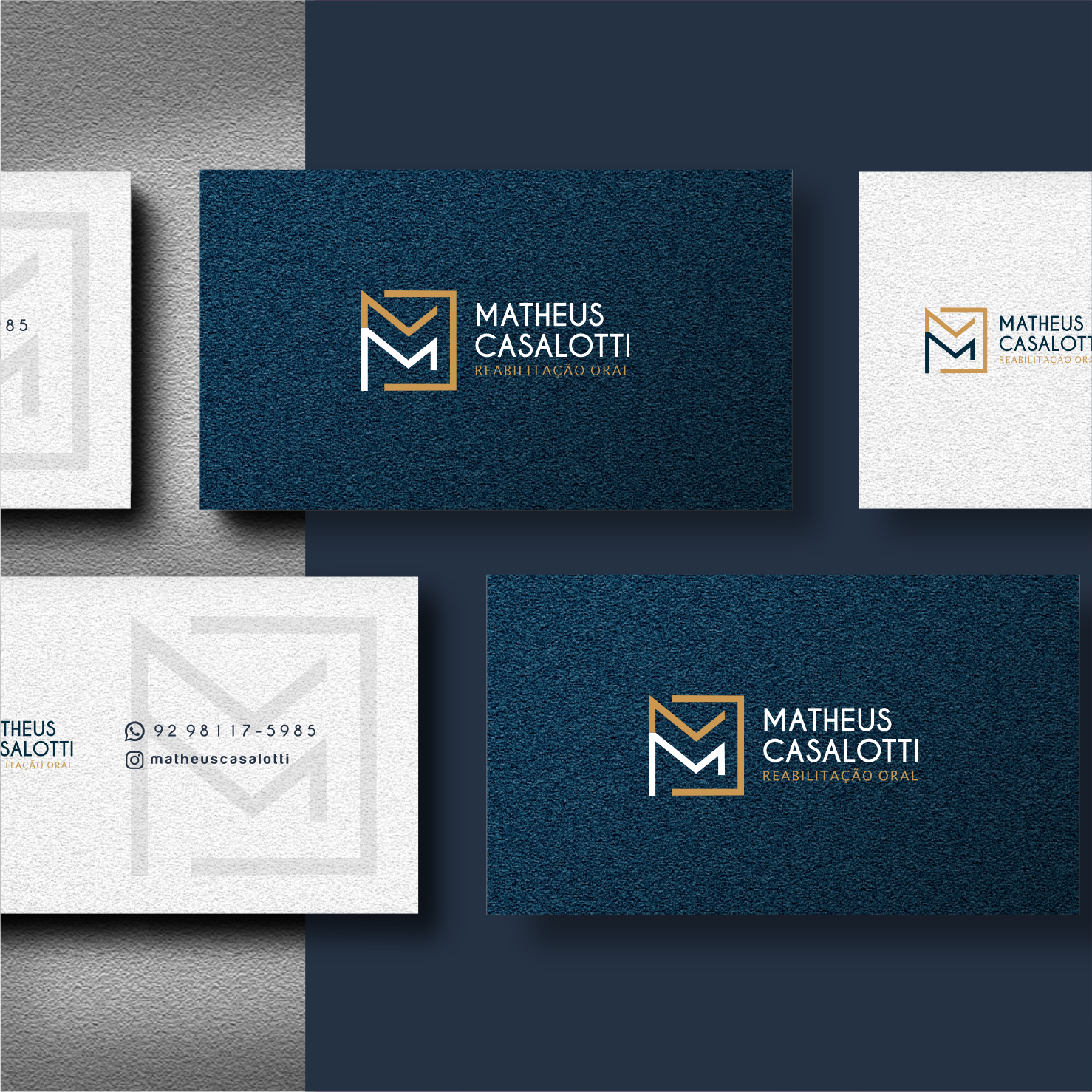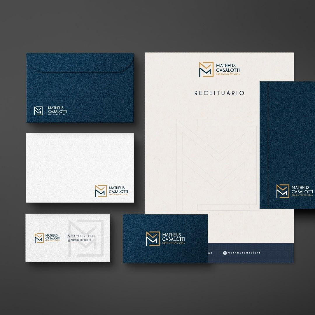 The visual identity created for Dr. Matheus Casalotti, a dental surgeon, was designed to convey professionalism, trust, and sophistication. The goal was to build a personal brand that is minimalist, versatile, and representative of his work in the healthcare field.