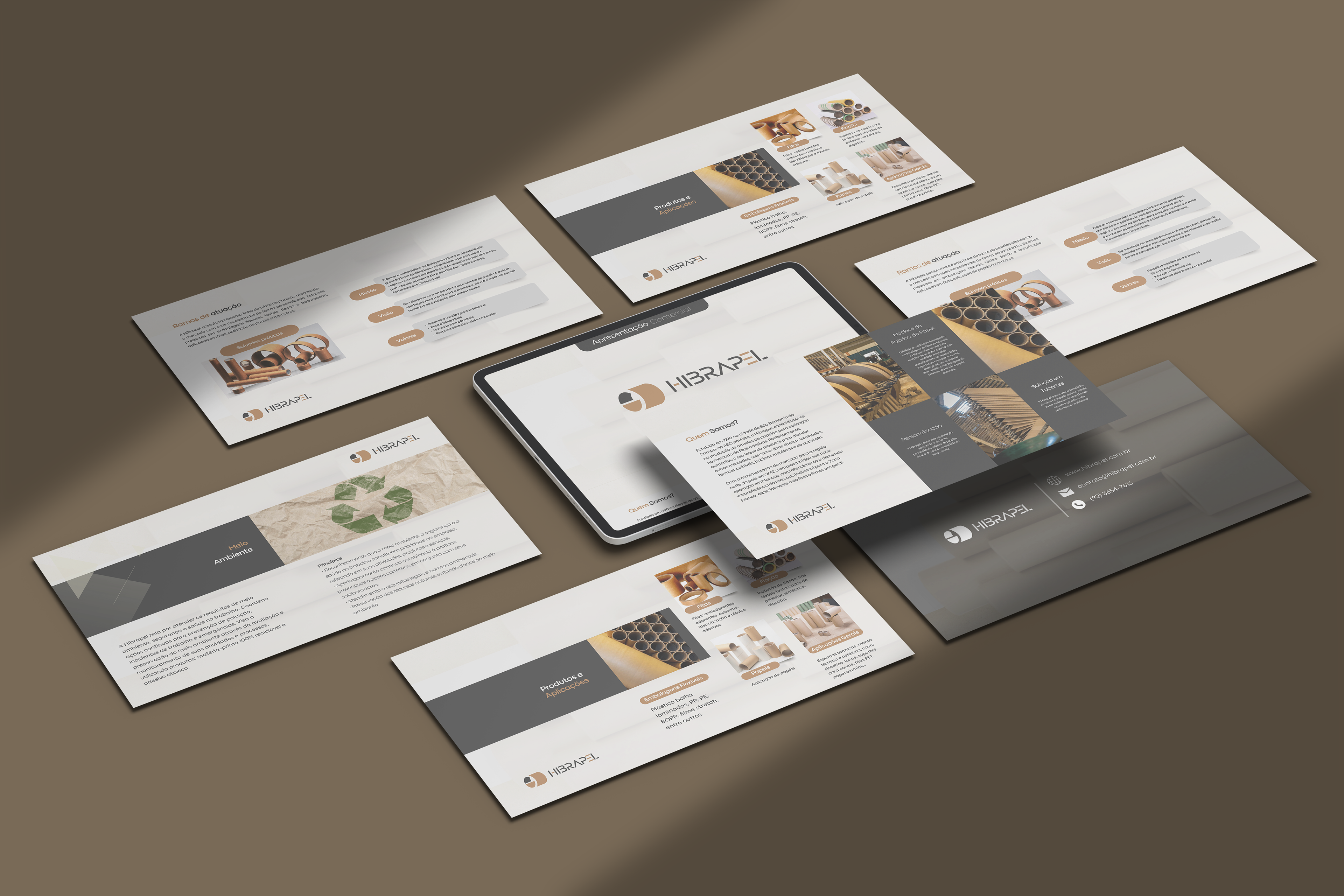For Hibrapel’s corporate presentation, I created the full layout using Adobe Illustrator. The visual concept was designed to align with the brand’s positioning, highlighting the company’s values, structure, and unique strengths in a clear and professional way. I structured the content to ensure smooth reading and visual impact, using graphic elements that reinforce Hibrapel’s identity and effectively communicate its presence in the cardboard packaging industry.