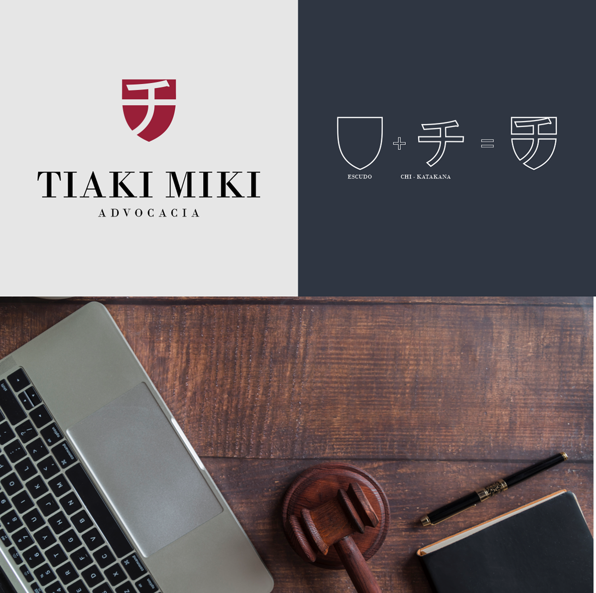 A identidade visual criada para Tiaki Miki Advocacia partiu de um pedido claro: desenvolver um logotipo personalizado e distinto, que se afastasse dos elementos jurídicos tradicionais — como balanças, colunas ou martelos — amplamente utilizados no mercado.