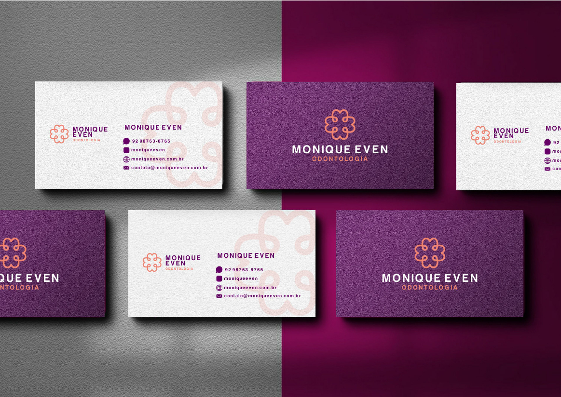 A identidade visual desenvolvida para a Dra. Monique Even, cirurgiã-dentista, foi pensada para unir elegância, simplicidade e representação direta da sua área de atuação: a odontologia.