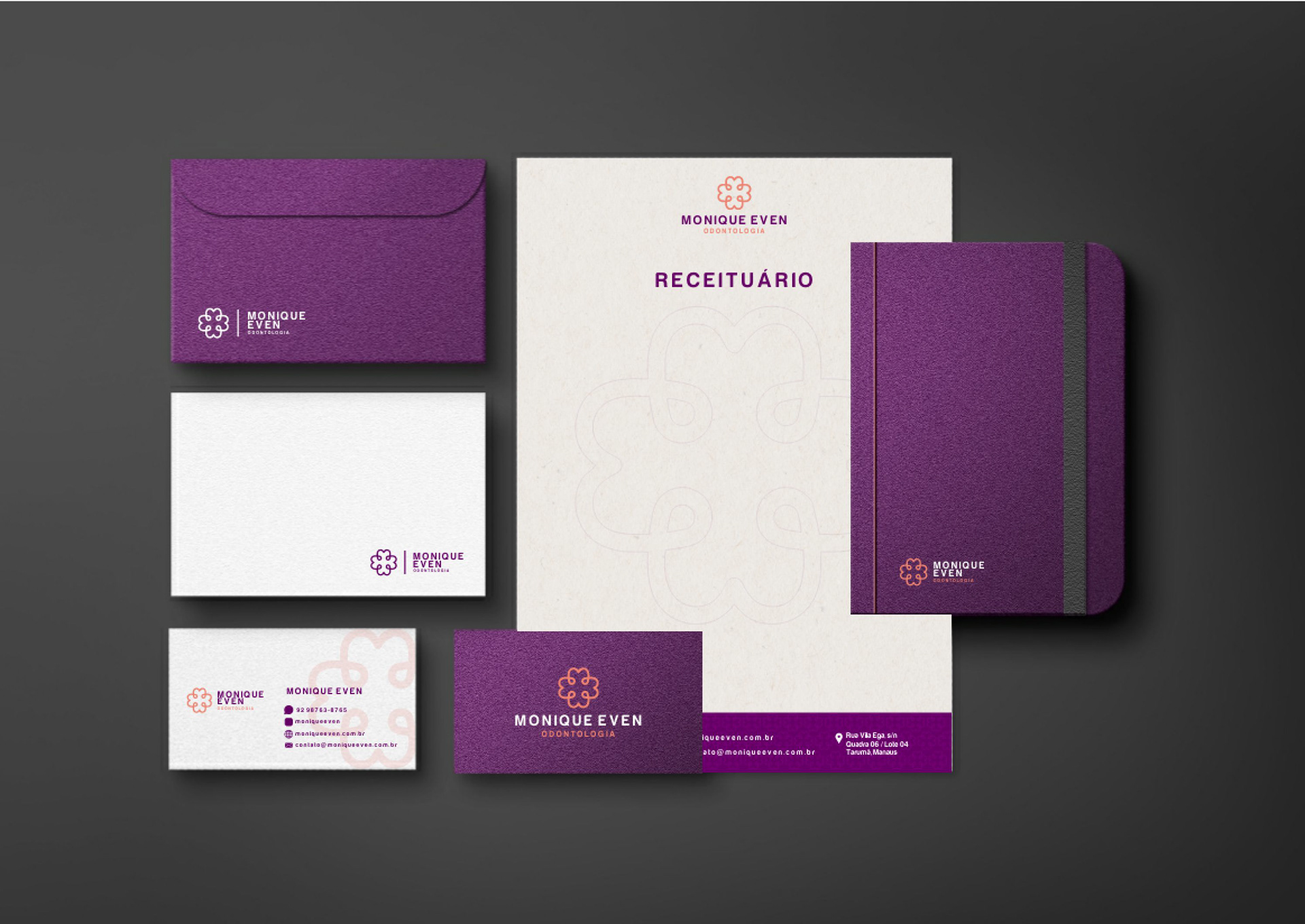 The visual identity created for Dr. Monique Even, a dental surgeon, was designed to combine elegance, simplicity, and a clear representation of her field: dentistry.