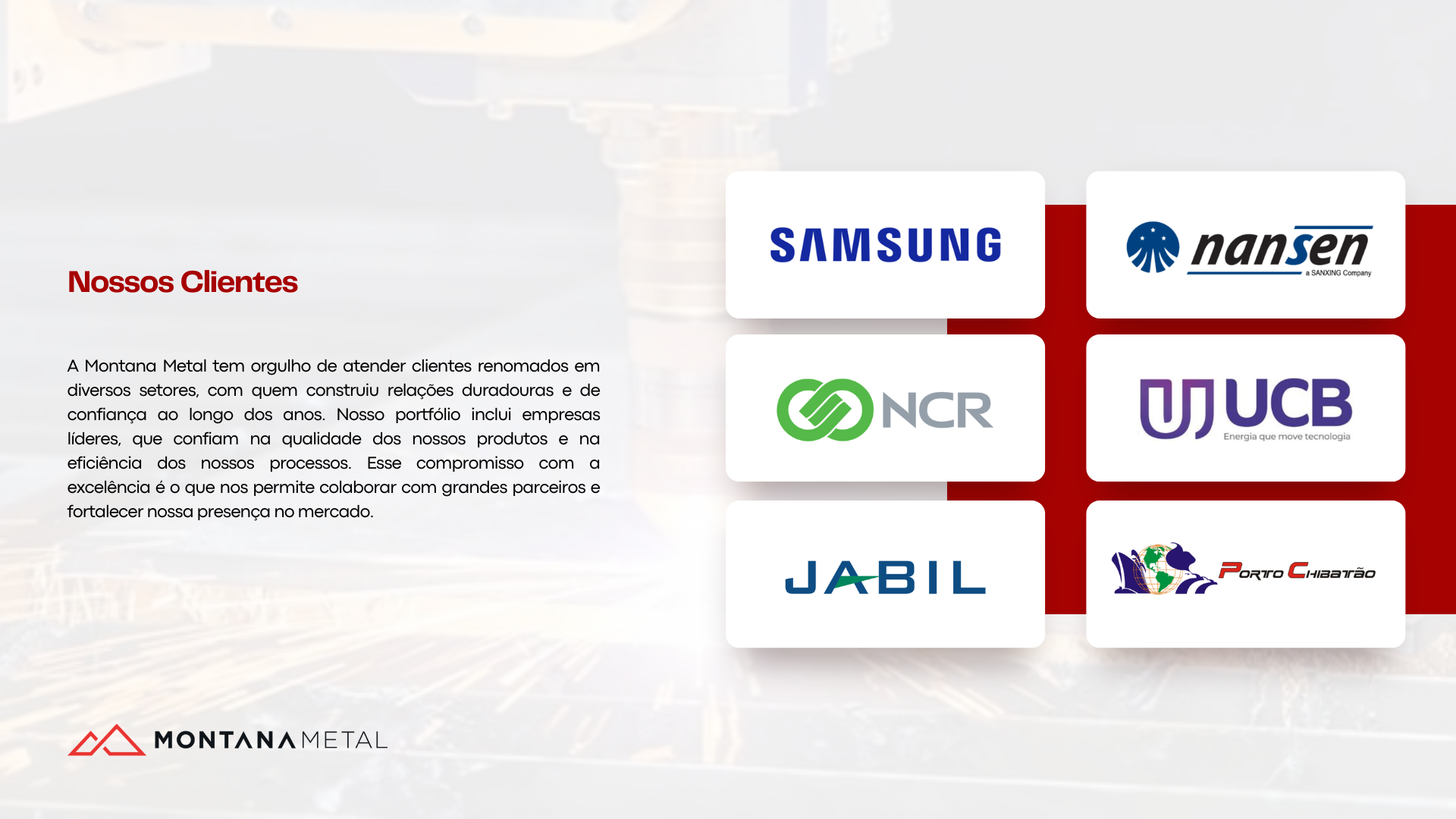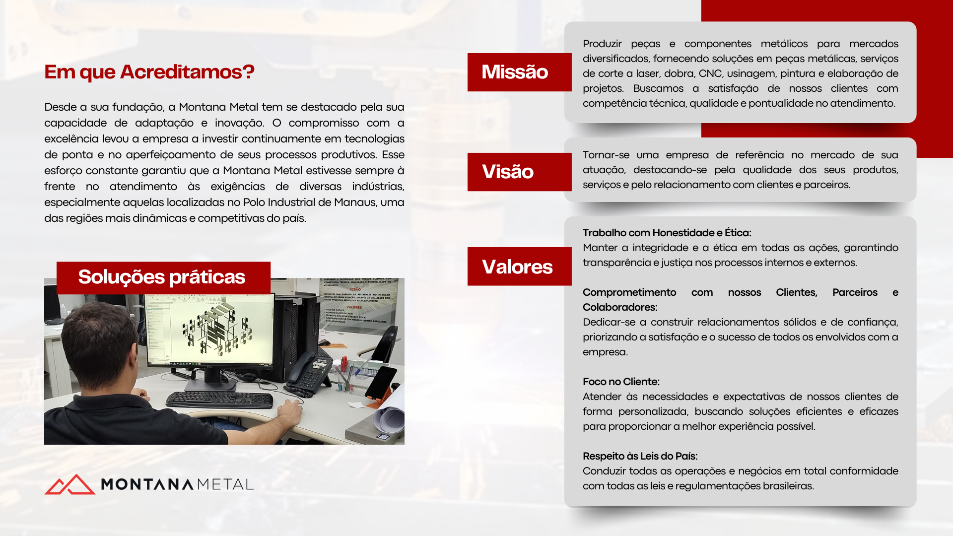 Na apresentação institucional da Montana Metal, fui responsável por toda a criação do layout e do design gráfico, utilizando o Adobe Illustrator. A proposta visual foi desenvolvida com foco na solidez, modernidade e excelência industrial que a empresa representa. Organizei o conteúdo de forma estratégica, valorizando os diferenciais da Montana Metal e tornando a leitura dinâmica e clara. Cada elemento gráfico foi pensado para reforçar a identidade visual da marca e transmitir profissionalismo em cada página da apresentação.