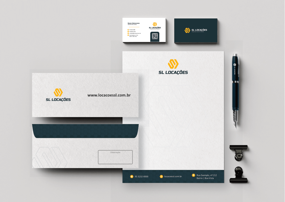 O resultado é uma identidade visual moderna, robusta e versátil, capaz de traduzir a essência da SL Locações em cada detalhe.