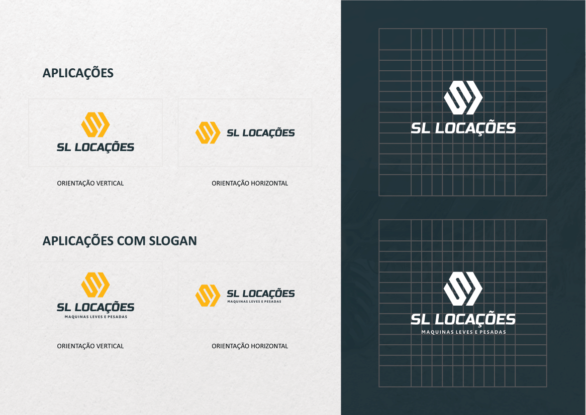 O projeto de criação da marca SL Locações teve como objetivo representar a força, a robustez e a confiança que a empresa entrega a seus clientes.